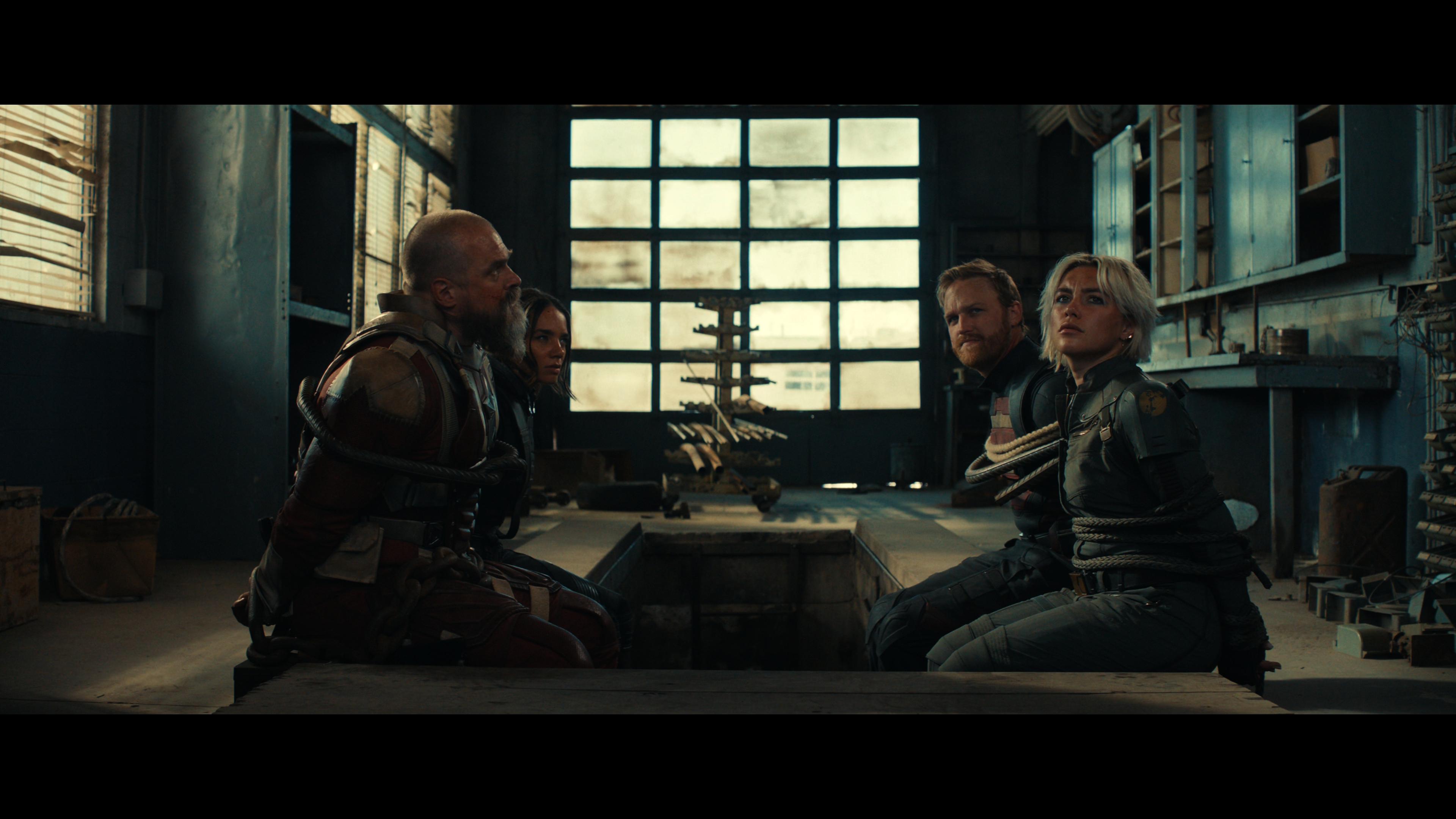 This might sound weird, but the best way I know how to describe the 2160p Dolby Vision transfer for Thunderbolts* would be beautifully dull. It’s not that there isn’t a lot to look at or appreciate; it’s more about the color scheme. This isn’t a bright and cheery film like Guardians of the Galaxy; even the opening Marvel logo is noticeably devoid of color. However, that’s an emotional choice driven by the film's atmosphere. When color does come into the film, namely Bob’s bold yellow Sentry costume, it is more threatening than welcoming or warm. All of that is a long way to say this Marvel entry has a very unique look, and it looks terrific in 4K. Details are sharp and clean throughout, letting you observe and appreciate all of the small details in the character’s costumes. The Dolby Vision grade is nicely applied, allowing the splashes of color to pop when they appear, even in darker and more thematically grim scenes. Skin tones are healthy and human. Black levels and shadows are excellent, lending the image a nice sense of depth, especially in the final act, as some of the character arcs unfold. Whites are nice and crisp.