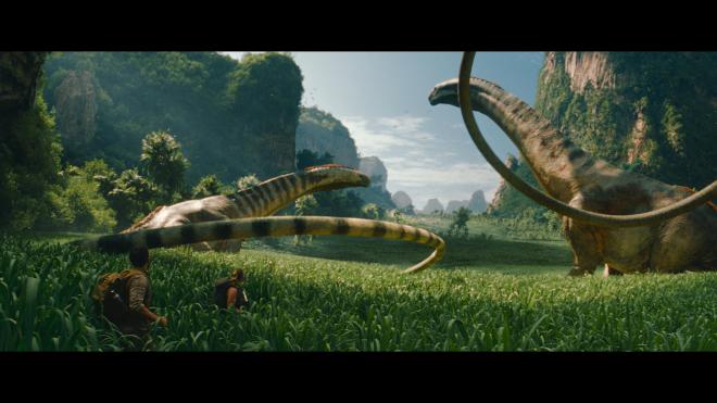 On 4K, Rebirth offers an impressively filmic 2160p Dolby Vision 2.39:1 transfer. Reportedly shot on 35mm and finished with a 4K digital intermediate, the film looks terrific on home video. Sadly, this film didn’t receive an IMAX release (at least not here in the States; I'm not sure about elsewhere), so I never had the massive screen experience in theaters; I just had a standard 3D screening. This 4K treatment is terrific - it might well be the best-looking Jurassic film on the format! Details are crisp and clear throughout. Facial features, costumes, set design, the practical effects, creatures, and even the CGI critters all look great. When things went CGI, the monsters look and feel like they have weight and dimension, something that doesn’t always hold up for high-rez transfers. But the big beasts look pretty damn great! The Dolby Vision grade is strong, letting the bright primaries of the Thailand location scenery really pop, along with healthy skin and scale tones for our humans and dinosaurs. I was most impressed with black levels; this movie loves its dark, shadowy places, and they were flawless. Ultimately a terrific transfer that makes the best of cinematographer John Mathieson's work.
