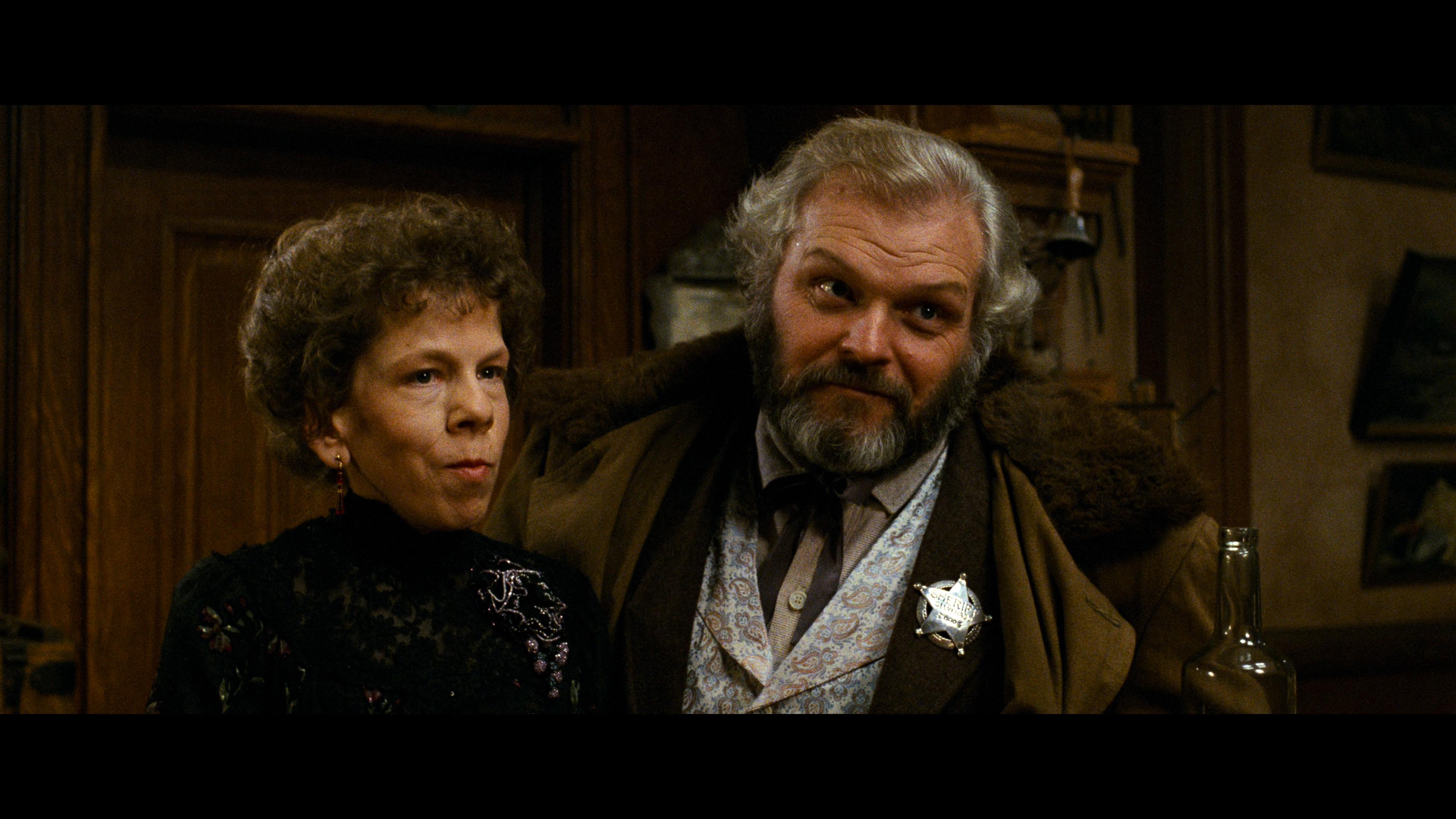 The Dolby Vision grading may seem a bit subtle, but it makes tremendous use of natural lighting. Those golden sunsets, the dusty trail, and the bright primaries find plenty of time to shine. Skin tones are naturally healthy and human. Black levels are spot on, with excellent shadow detail. Again, there is plenty of flickering firelight, lanterns, and candles to create the appropriately rustic mood without ever dipping into crush. Front to back, it's a terrific image that complements John Bailey’s cinematography beautifully.