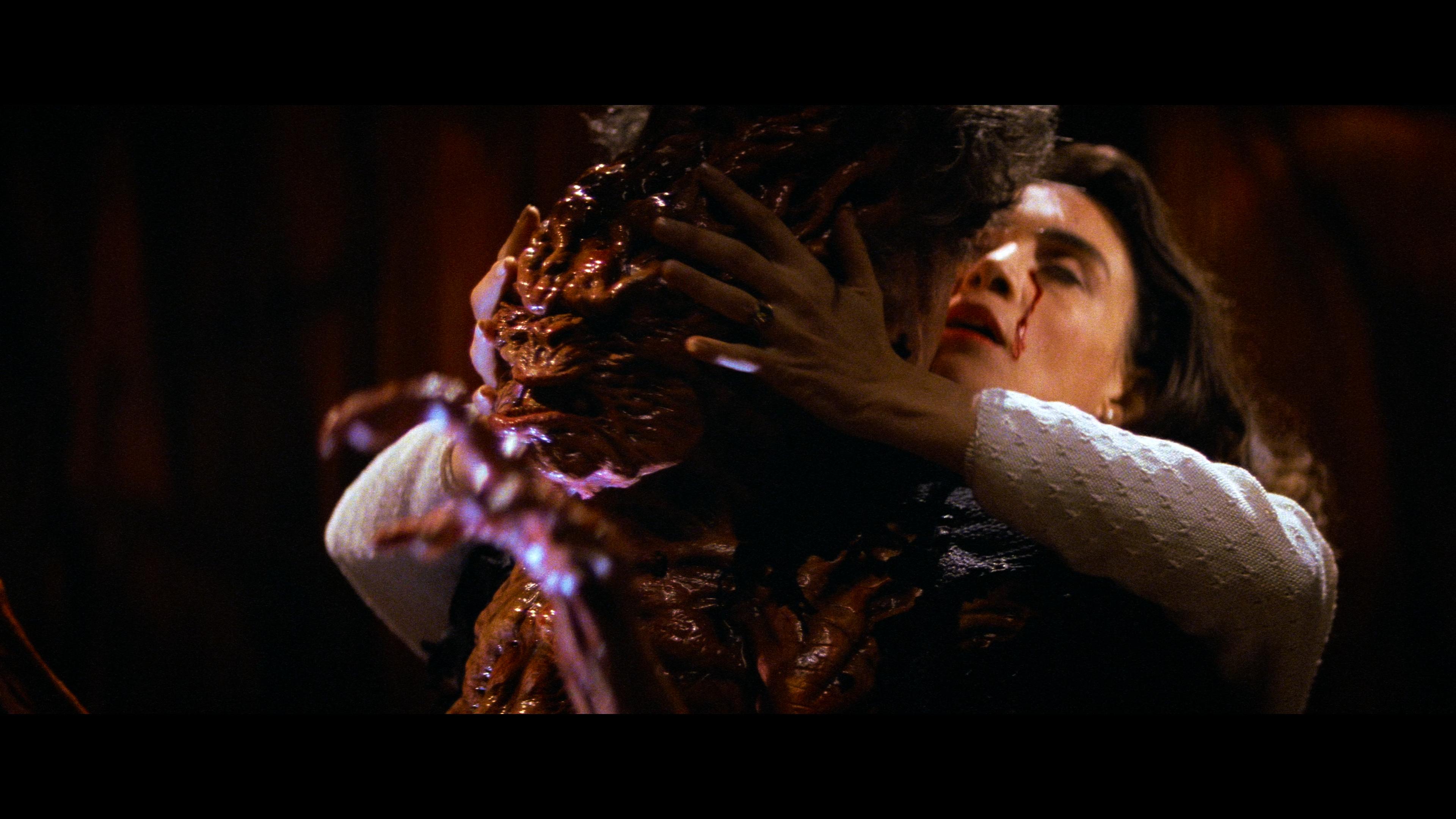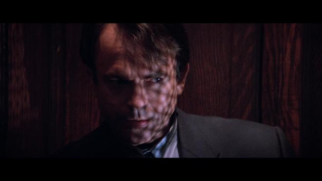 Going back about seven years, Scream Factory delivered an excellent Collector’s Edition Blu-ray restored from a new 4K scan. Having recently watched that disc, I wasn’t sure if there was much room for improvement, but Arrow managed to find some space. While the two discs look very similar, the 2160p Dolby Vision image offers some immediate notable improvements in clarity and image stability. It was very nice to see so many clean, detailed lines in the facial features, costumes, architecture, creepy crosses in Trench’s padded cell, makeup effects, and so forth. Then we get the added benefit of tighter, better-rendered film grain that isn’t quite as noisy as previous releases. That sense of three-dimensional depth really comes into its own. Some of the optical effects can look a tad hazy, some early CGI still pokes out a little, but overall it’s a fantastic new transfer. The Dolby Vision grade doesn’t change anything radically but offers more nuance and subtlety in the colors, black levels, and contrast we just weren’t seeing on the 1080p discs.