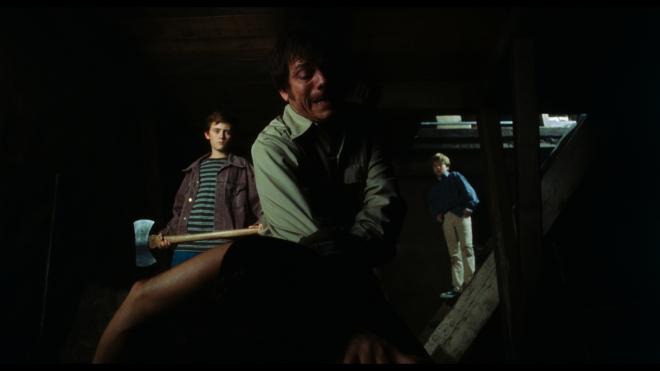 The film's restoration was supervised by its original telecine colorist, Kostas Theodosiou, who still had access to reference footage and notes from its original post-production schedule. The result is incredible. Graded in Dolby Vision HDR, Frailty has never looked better on home video. The blacks of the nighttime sequences are thick, inky black, while the greens of the grass and trees during the daylight sequences are oppressive and aggrandized, almost like a Lynchian surrealness of happier times, with terror looming just beneath.