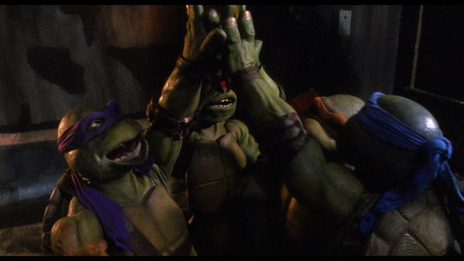 The other two films in the collection look terrific, too, but the first movie benefits the most from the implementation of HDR. Teenage Mutant Ninja Turtles is a dark film, illuminated by blooms of light. In a way, it almost feels like a demonstration of what Dolby Vision/HDR are capable of, balancing light and dark without either element competing for screen space. This release also corrects some over-darkening we saw on previous DVD and Blu-ray releases, referring to the answer print for color timing and light levels.