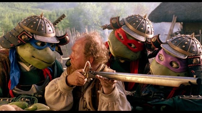John Du Prez, who composed all three Turtles films included in this set, mixes things up a bit for this film’s score and leans into a bass-heavy beat with lots of drums to evoke a feeling of 17th-century Japan. In the film’s tense moments, it also becomes a sort of discordant piece, reminiscent of Angelo Badalamenti’s work on the Twin Peaks television series.