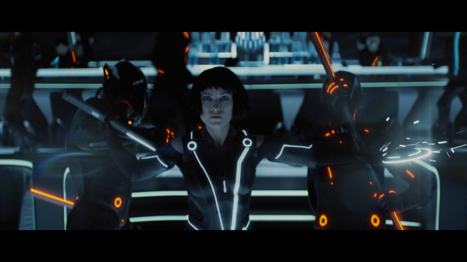 The Dolby Vision HDR presentation showcases a stronger spot-on contrast and brightness balance, brimming with radiant, pristine whites and crisp, resplendent specular highlights revealing minute features within the brightest, hottest areas. At the same time, the world inside the mainframe is bathed in inky, raven blacks while velvety, stygian shadows maintain outstanding visibility within the deepest, darkest shadows. Likewise, sumptuous primaries supply an energetic, eye-catching pop to every scene while softer secondary hues are richly saturated and varied.