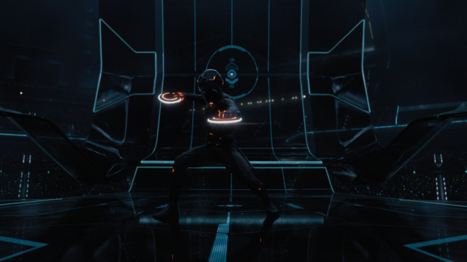 "The legacy of the first movie is clearly the groundbreaking special effects. They were far ahead of their time and paved the way for computer animation. Tron: Legacy builds on those groundbreaking effects and brings them into the modern arena. To say the effects in this film are amazing doesn't begin [to] do them justice. Simply put, they're jaw dropping. From the start of pre-production, the producers sought to create an experience that would please the fans of the original and draw in a new audience. To do this, they took the gladiator type battles from the first film and beefed them up to a larger than life style. Watching the lightcycle race in 3D IMAX is an incredible experience, one that will have fans old and new on the edge of their seats. The environment of the grid is equally impressive. Bright neon lights as far as the eye can see, combined with the monstrous vehicles, combine to create a visual playground.