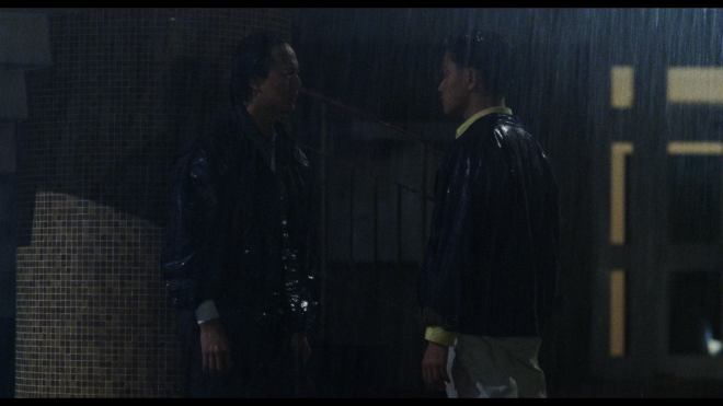 But what really makes the movie a special standout is the dramatic plot that Woo co-wrote with Chan Hing-ka and Leung Suk-wah, which is loosely inspired by The Story of a Discharged Prisoner (1967). He places as much attention on the characters, their development and their emotional turmoil as he does on staging big operatic action sequences. The conflict between Ho and his cop brother Kit (Leslie Cheung) is a heartbreaking tragedy caused by Ho's criminal connections, providing the central conflict that makes the brutal violence matter. Meanwhile, Mark and Ho's deep and loyal friendship is the heart and soul of the story that raises the poignant stakes in the second half. Ti's Ho is a grim and beaten convict trying to go straight but pulled back to a life he'd rather forget. And Chow's Mark appears calm and reserved, but he is bubbling with a volcanic rage that's ready to erupt. Their charm and chemistry are ultimately what ground Woo's early stylistic spectacle. (Movie Rating: 4.5/5)