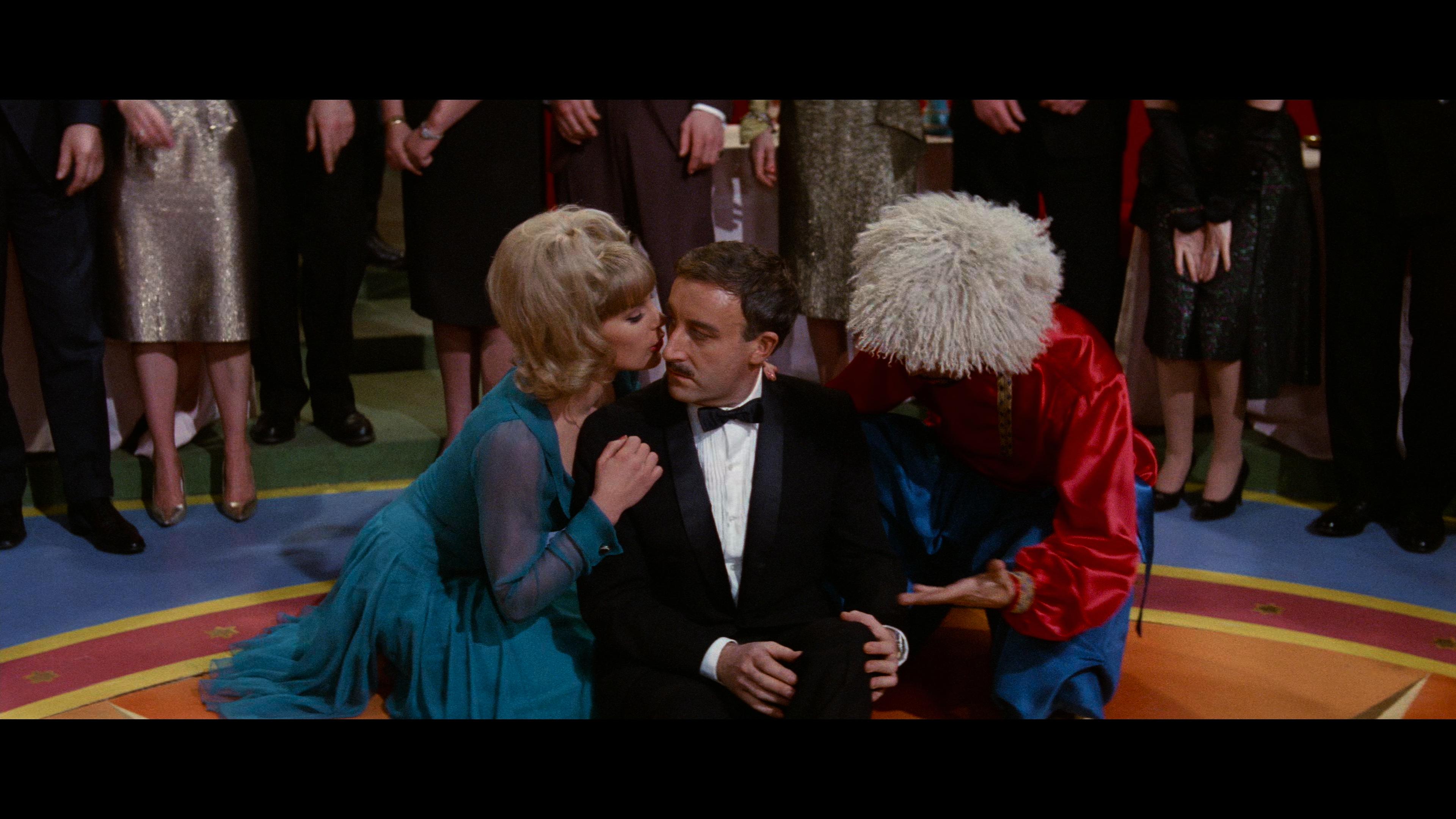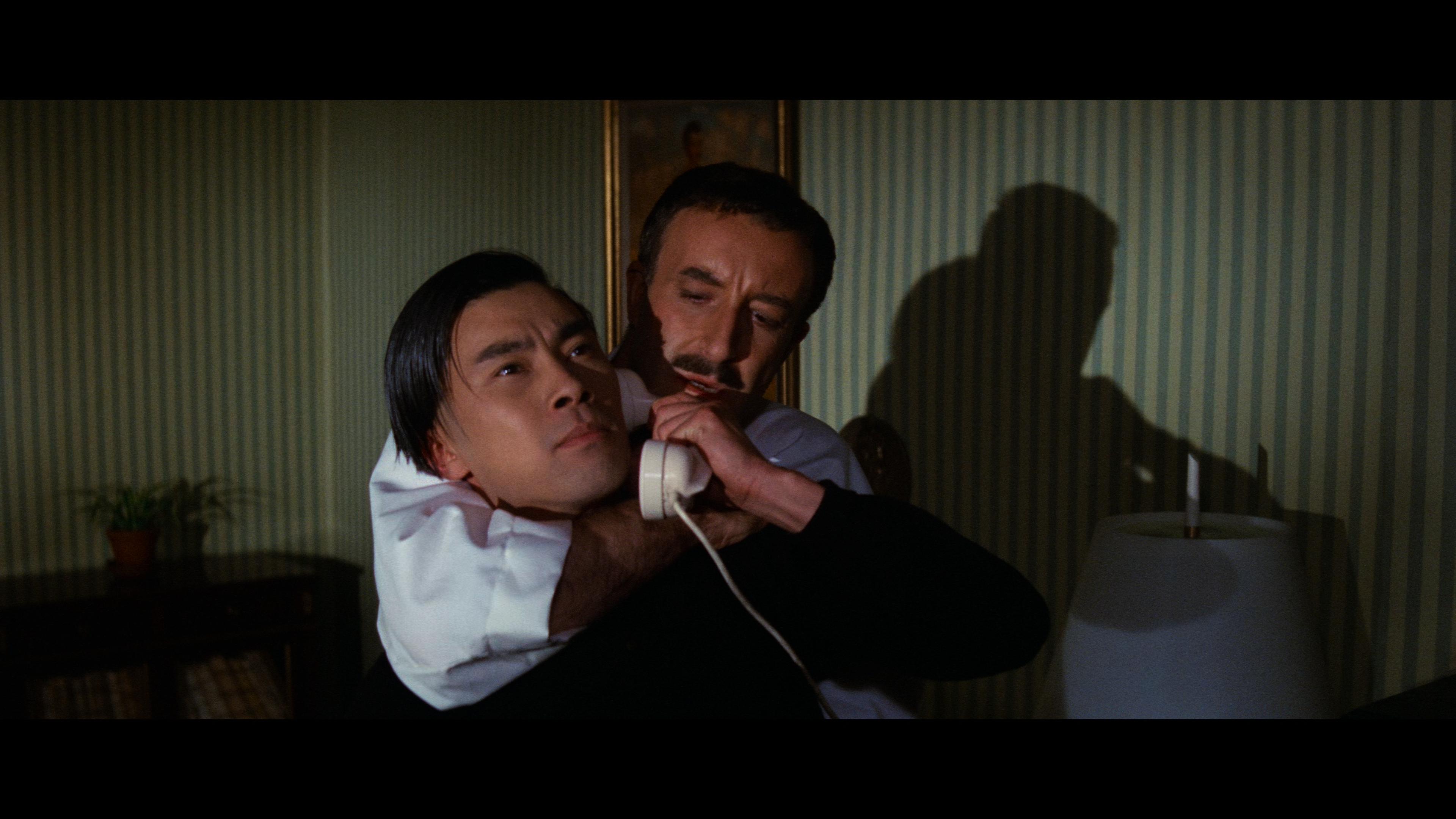 Because it’s my favorite of the franchise, it’s even more painful to report that A Shot In The Dark didn’t hit the bullseye on 4K UHD. Make no mistake, this is far better than what we saw on the previous Blu-ray (and anything before that point). When it’s on point, it’s beautiful, and we see those signs of a fresh new scan and a subtle but welcome HDR-driven visual refresh. When it’s rough, it shows clear as day. First, though, I’ll start with the good news. Fine line details are sharper than ever, with plenty of attention paid to facial features, clothing patterns, and the impressive production design work. Film grain is nice and tight, finely rendered for a healthy cinematic veneer. The Dolby Vision grade is on point for this film without being overly aggressive. The film was always the darkest-toned of the film (not just content but in all aspects), so black levels and shadows are appropriately stronger without crushing. Colors are healthy and natural; primaries enjoy a lovely pop. Contrast might be a tad hot in places, whites maybe a little too strong, but I’ve seen this movie look nuclear-white-bright, so I’ll take this as something of a welcome middle ground.