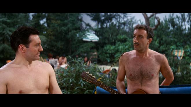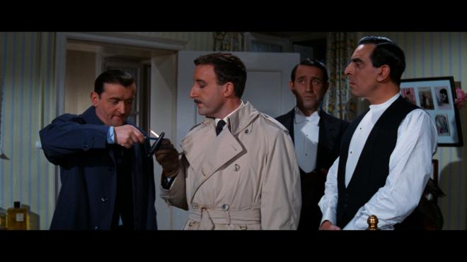 What sadly pulls back my praise is the condition of the source elements. Speckling and what look like small punctures or tears, and, in some instances, noticeable frame judder are present. This transfer was reportedly pulled from a new 4K scan of the 35mm negative. I can believe that for many sequences, others have the wear-and-tear appearance of a later-generation source. If it were just a little insignificant speckling, I could forgive that, but the sporadic frame judder is quite distracting and just brings the other discrepancies into focus. Again, I’ll grant my favoritism for this film colors my displeasure somewhat, but at the same time, in this day and age, when you can have some classics that are even older than this film look like they were newly shot yesterday, a little more restoration time would have meant the world here. Realistically, it's not the worst, and I imagine some folks may not be too troubled by it, but I just can't bring myself to give much leeway in the score and have to kick it back a peg. It's still quite good, but after seeing The Pink Panther, I was hoping for better.