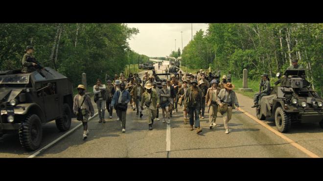 The Long Walk journeys through dystopian America (by way of Manitoba shooting locations) with an excellent 2160p Dolby Vision transfer. Given that the entirety of the film takes place outdoors, there are some often breathtaking vistas to enjoy, you know, in between all of the horrifying deaths. Facial features, clothing, the army vehicles, the weathered farms, and small town shops all offer an impressive range in clarity. In fact, I think it’s almost too good-looking in places. If I have a lingering complaint about the film, it's that I always felt it should have been shot on low-quality film stock; 16mm would have been a hell of a look. That niggle aside, this does look excellent in high resolution. The Dolby Vision grade gives a little more nuance to the lighting and colors, letting the image’s sense of depth feel expansive.