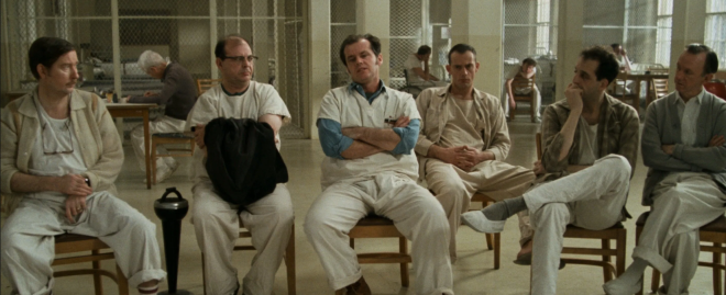 Given the current political climate, it seems oddly fitting, serendipitous even, that One Flew Over the Cuckoo's Nest would see yet another home video release, this time celebrating its 50th anniversary. Then again, the story's themes and allusions are such universal subjects that the film will always attract audiences within any given zeitgeist. Today, most of the arguing and bickering polluting the airwaves and creating hostile tensions revolve around conflicting ideas about the nation. One side pushes a conservative point of view while espousing self-reliance, but actually enforces conformity and obedience. The other seeks a humanistic and progressive approach, believing tolerance and change are the best, altruistic remedy for a happy, autonomous individual.
