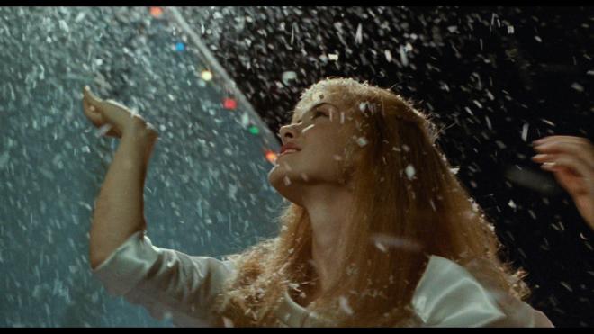 Edward Scissorhands was shot on 35mm and using Panavision cameras and lenses by cinematographer Stefan Czapsky. Framed at 1.85:1, the film is a gorgeous, sweeping vision of bright pastels, deep inky blacks, and finely detailed production design (including many miniatures). Thanks to Burton preferring to make his practical effects look exactly that, it’s always clear when the film drops into an optical effect or isn’t some raw 35mm image capture. That’s why it’s so disappointing to report that while this 2160p presentation offers a little boost in resolution and finally allows those gorgeous colors to breathe, the shaky HEVC encode does this film dirty. In nearly every scene, I detected excess chroma noise in both foreground and background. Burton’s film is resplendent with grain, and while the encode certainly resolves it better than the previous Blu-ray, the wildly uneven bitrate tends to disrupt the presentation.
