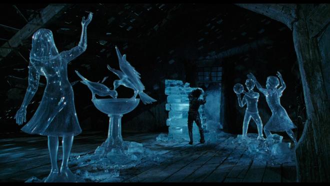 The new Dolby Atmos soundtrack is based upon the 4.0 surround track used on previous Blu-ray releases and offers a nice boost in environmental and spatial effects. That wild Danny Elfman score zooms between the channels and envelops you, and those jagged noises of scissors cutting gain added impact in the height channels. All in all, this is a pleasing Dolby Atmos upgrade.