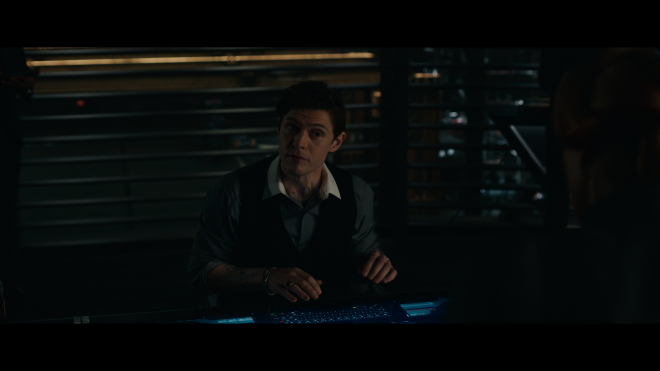 A programmed hero breaks into the real world with a stunner of an Ultra HD release, boasting razor-sharp clarity from start to finish. From the fabric and stitching of clothing to intricate features of buildings and various vehicles, the HEVC H.265 encode is striking and highly detailed. Transported directly from a digital source, the native 4K transfer also arrives with pitch-perfect contrast balance, showering the visuals with brilliant, squeaky-clean whites and crisp, resplendent specular highlights. On the other end, black levels are exceptionally inky and velvety with deeply rich, stygian shadows that never obscure the finer details and show outstanding gradations between the various shades, providing the 2.39:1 image with an excellent three-dimensional quality. The Dolby Vision HDR presentation also arrives with a full-bodied, sumptuous array of colors with primaries, in particular, dazzling the screens, and skin tones appear healthy and accurate while also highly revealing.
