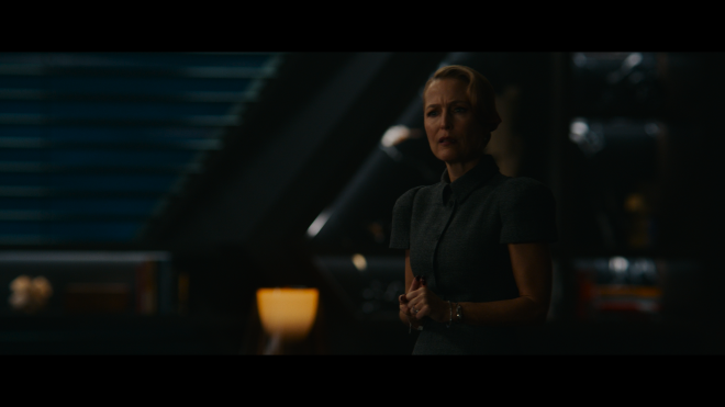 Unfortunately, the supporting cast doesn't fare much better, although they try their best with what they're given. Greta Lee's Eve Kim, the current CEO of ENCOM searching for Kevin Flynn's Permanence Code, is saddled with a half-baked budding romance subplot with Ares that goes nowhere while also feeling weirdly awkward and vaguely unsettling to watch, like some fan-fiction fever dream. Evan Peters and Gillian Anderson are sadly wasted as forgettable antagonists who pose about as much threat as a pop-up ad interrupting a video game, serving as little more than window dressing in a story that sorely needs to raise the stakes. However, the true standout is Jodie Turner-Smith as Athena, a ruthlessly efficient assassin program so lethal, calculated, and terrifying that she should be hunting Sarah Connor instead. She brings genuine danger in every scene she steals, making me wish there was more of her than the rest of the cast.