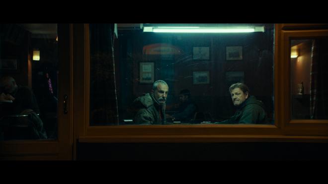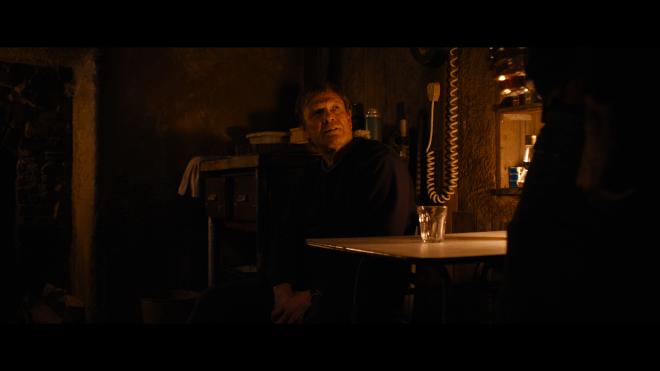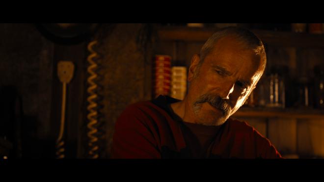 Anemone arrives on disc with an excellent 2160p Dolby Vision transfer. Hardly a bright and cheery film, the visuals mostly keep to Ray’s remote cabin and the forested scenery that surrounds him. So that makes for some deliciously moody, atmospheric photography from Ben Fordesman. Lots of stark-contrast imagery here, with limited light sources and deep shadows, but throughout, fine details remain crisply lifelike and clear. Daniel Day-Lewis has some great speeches, and with that clarity, I’m just glad I’ll likely never have the opportunity to have him look at me with that pissed-off glare of his, complete with grizzled mustache. Color schemes shift slightly depending on location. In the woods and at the cabin, tones are warmer and healthier. Move back to civilization, and the colors become significantly cooler. Along those lines, primaries can shift a bit, but everything looks on point with natural human skin tones. Black levels are excellent with strong shadows for an impressive dimensional image.