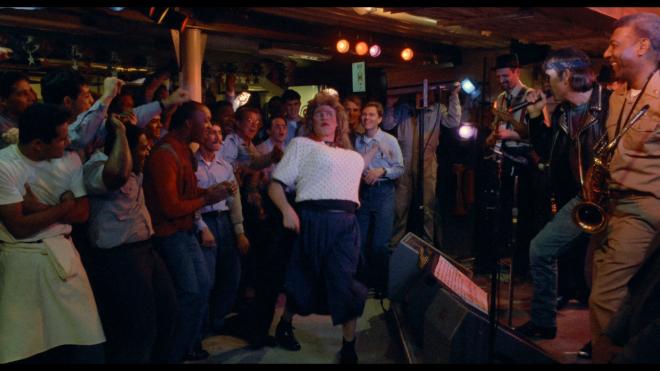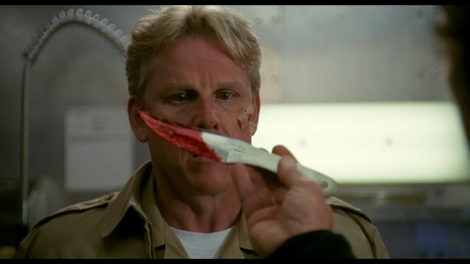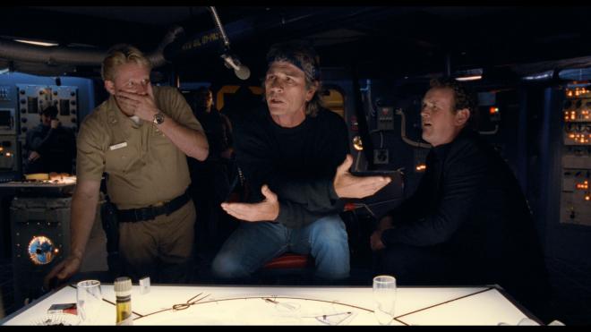 Facial features of our cast, the texture differences from the galley shipmen’s uniforms to the dress whites to Tommy Lee Jones’ bedazzled leather rocker jacket, all see an immediate improvement. Film grain is tightly rendered; it can be a little thicker in some of the darker shots or optical effects, but nothing distracting, whereas in some of the much brighter interiors, it can almost appear almost absent, but nothing looks like it’s been smoothed into oblivion. Color is a case of “it is what it is.” The Dolby Vision grade certainly looks great, but given what the characters wear and the setting, not a lot of places for colors to “pop,” but some red emergency lights get their time, and skin tones are healthy. Black levels and shadows are in much better shape this round. Segal’s black-clad orbicular frame doesn’t get lost in the darkness for some of the fight sequences anymore. I waffled on the rating for this: 4.5/5 felt too generous, but 4.0/5 also feels a tad too low. It's not earthshattering for the format, but for this film, it is a welcome upgrade.