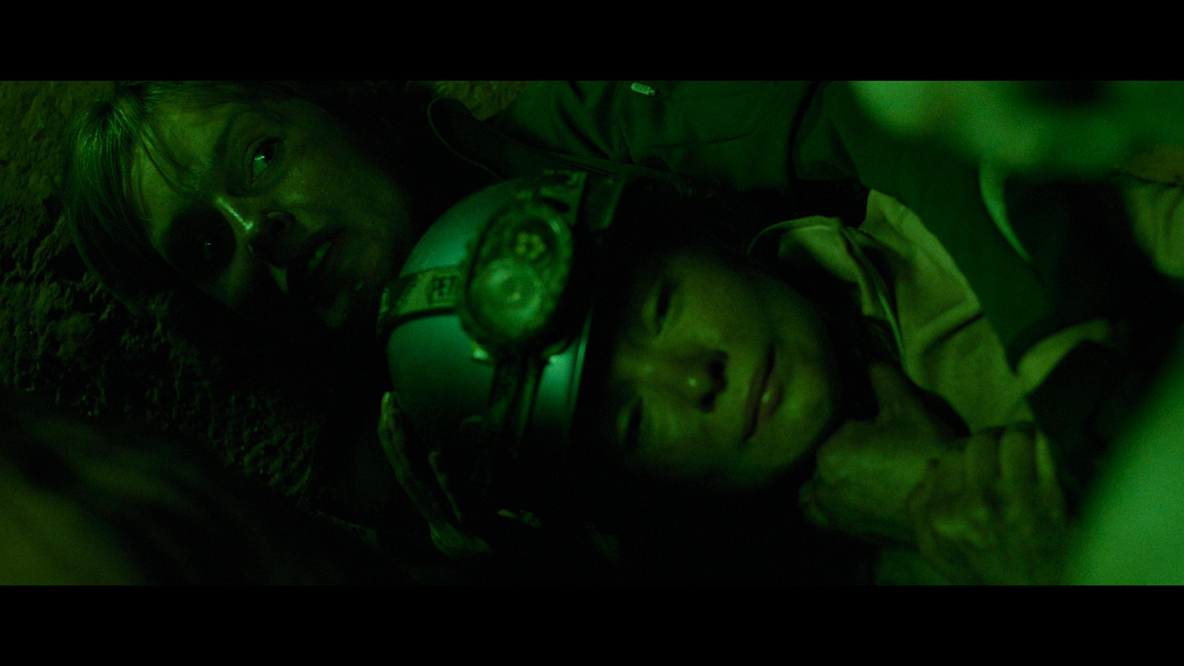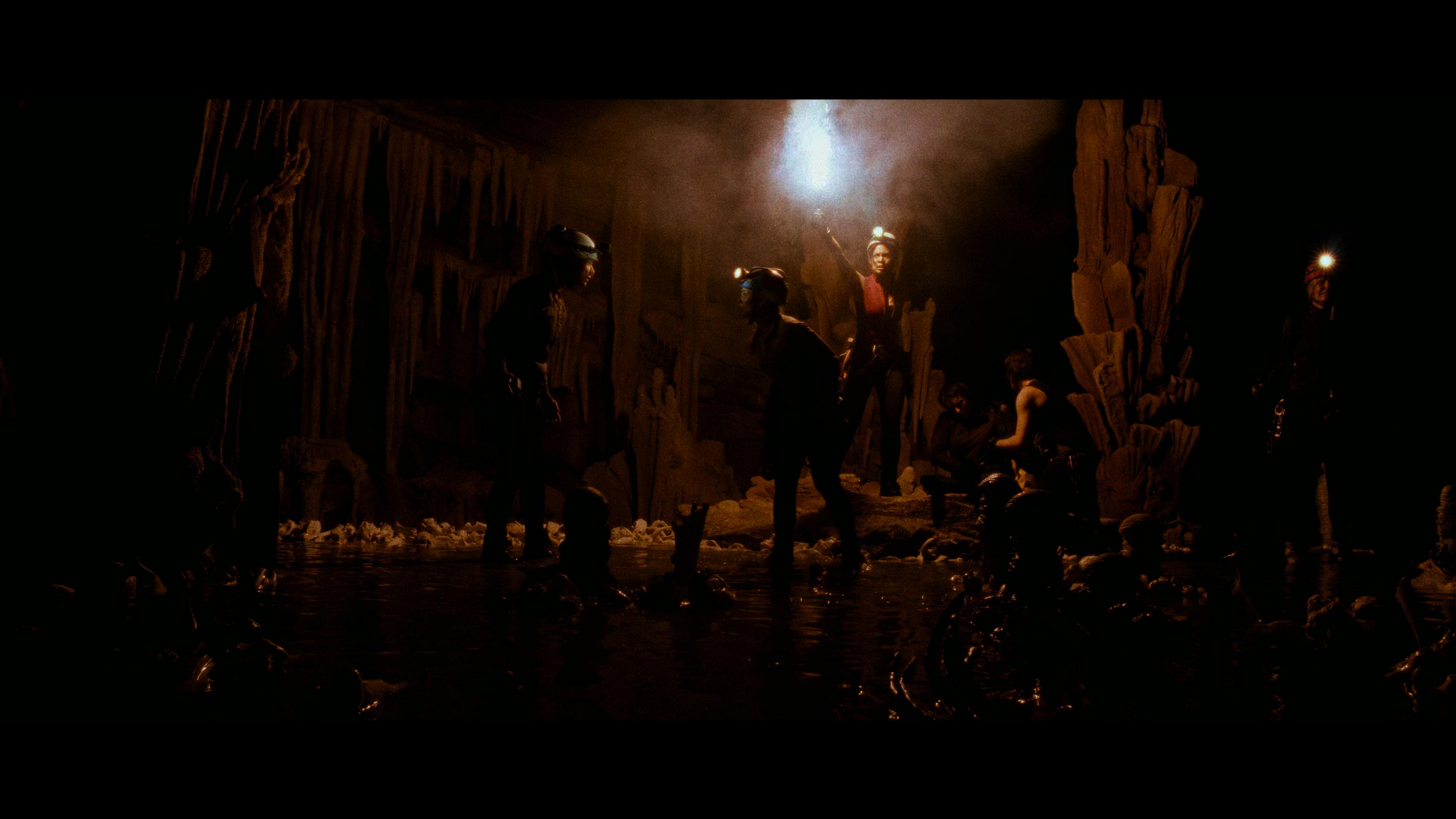 Thanks to an opening title card, we know that the film’s restoration was supervised by Pathe in collaboration with director Neil Marshall, with a 5K scan of the original 35mm negatives. VDM Laboratory later carried out the photochemical and digital restoration work. So to that point, we’re not getting a simple upscale with an HDR layer; we’re getting something a whole lot better, and it shows! Front to back, this is a gorgeous transfer. The original Blu-ray was great in its day, but there’s just no contest that a fresh scan and Dolby Vision can bring to a visually unique feature such as this. From the opening river rafting sequence, I felt the sense of detail clarity was greatly improved. And that became even more notable down in the cave. Film grain is also much tighter and more cleanly rendered with a stronger sense of depth.