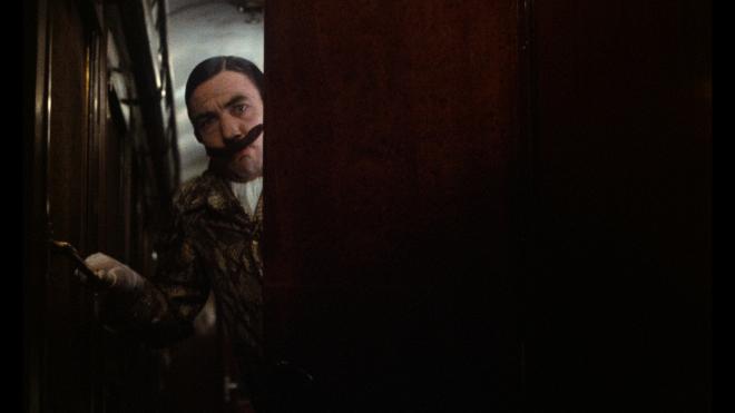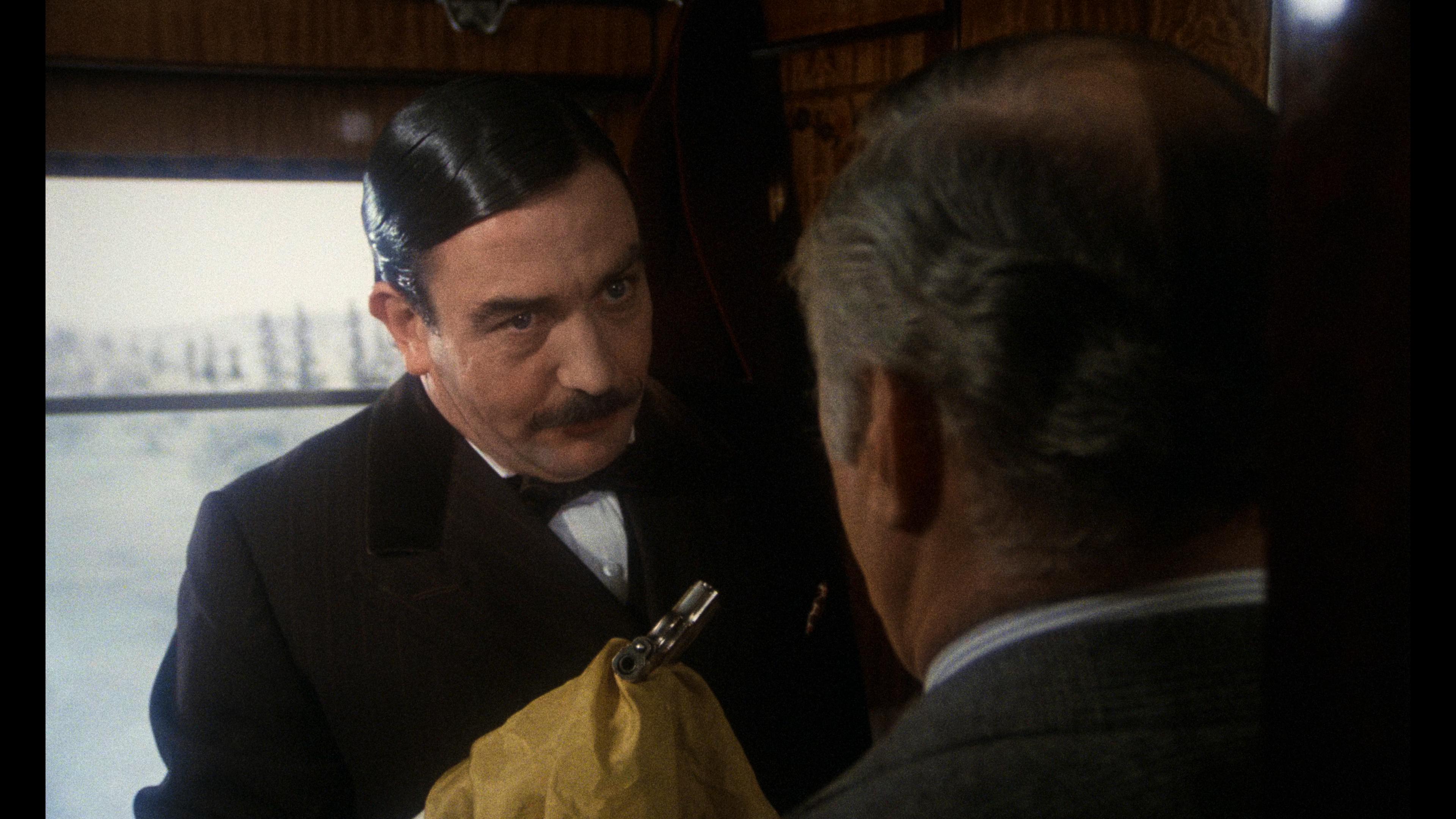 At face value, the transfer for this disc appears to be sourced from the same elements as those supplied by Paramount to Kino Lorber Studio Classics for their 4K UHD release, but there are a couple of differences. Most notably, this presentation has been slightly reframed to 1.70:1 versus 1.85:1. Now, this is apparently what StudioCanal did for their previous Blu-ray release compared to what we got here in the United States. From the little information I was able to dig up, it apparently appeared this way theatrically in Europe - but that might be more of an anecdotal note than a fact. As I’m more used to seeing the film in 1.85:1, it was something of a surprise, but I found it to be a rather pleasant experience. That slightly pillarboxed appearance made the train's confined space feel even tighter and more claustrophobic while also offering more image information at the top and bottom of the screen. See here: