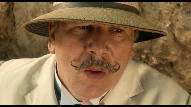 This film, like the rest of the box set, opens with a title card explaining the restoration process, so I don’t need to speculate that this Dolby Vision 1.85:1 transfer is sourced from a new 4K 16-BIT scan by Silver Salt Restoration - UK from the original 35mm negative. And boy, is it beautiful. I was impressed with the 2K restoration StudioCanal delivered and KLSC used for their disc, but I guess they felt they had more work to do! Fine details are so cleanly rendered with a nicely natural cinematic veneer of film grain, and there are moments that look like they were shot yesterday. The first time we see Peter Ustinov’s Poirot in Egypt, the close-up is so clear and lifelike that it was startling to see that big, round head on my screen! Where the previous Blu-ray was a notable upgrade over my vastly inferior older DVDs, this transfer takes all of that work and refines it further. The Dolby Vision grade doesn’t drastically overhaul the color scheme but gives primaries a little more life and heft. Skin tones are naturally human and healthy without looking too peached or pink. Black levels are nice and deep, and with the extra attention for shadowy spaces, that sense of three-dimensional depth is immediately noticeable. A truly lavish travel film, I am still in awe that they got to film at the pyramids and other locations, so it’s a highlight to see these monuments in such detail. I can’t see things getting better for this one. 5/5