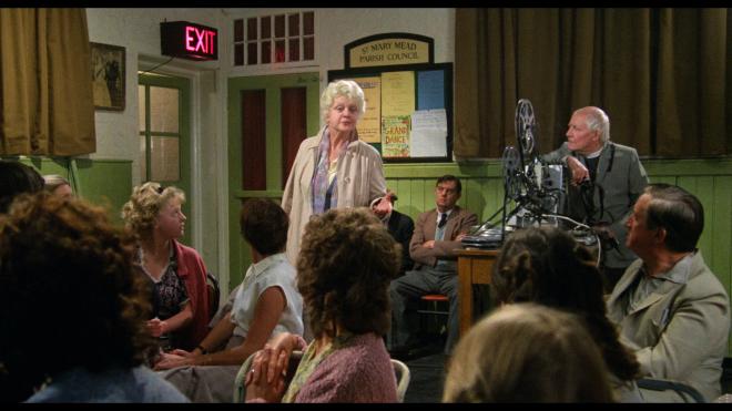 Following suit with Death on the Nile, we have the same title-card stating the same stats for the restoration effort by Silver Salt Restoration. And like Death on the Nile, we have another excellent 1.85:1 2160p Dolby Vision transfer to enjoy. Now, this film isn’t as lavish or exotic as the other three films in this set, but it’s often a very good-looking feature. The quiet English countryside depicted here has never looked better. Going in, I was a tad worried that the extra resolution would betray some of the makeup work done to make Lansbury appear older, but it holds tight. StudioCanal did that great 2K restoration, and this new effort is another fine example of what a little bit of time and new technology can provide for physical media fans. As I write this, I find I’m repeating a number of points I just mentioned for Death on the Nile: details are sharper, cleaner, with a more tightly rendered veneer of film grain. The Dolby Vision pass isn’t overly aggressive - the color timing appears on point with strong primaries and healthy skin tones. Black levels are strong; we certainly get our share of deep, dark shadows for several sequences. The black-and-white fake movie opening also looks pretty damned impressive for the few moments we enjoy that wannabe Whodunit feature. 4.5/5