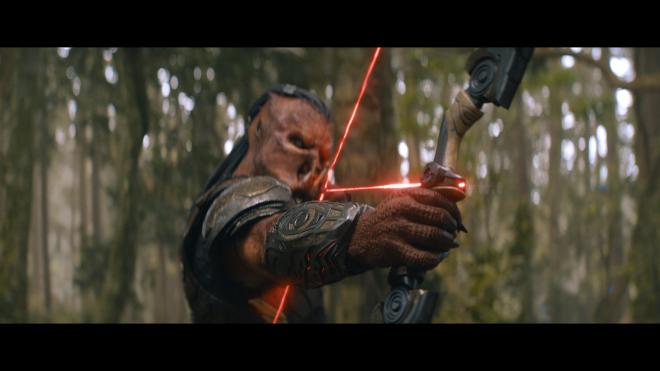 Rather than finding some hapless band of random humans in a slightly different location with another Predator armed with a different but cool assortment of weapons, Trachtenberg introduces us to Dek (Dimitrius Schuster-Koloamatangi). The smallest of his Yautja clan, he was to be killed by his brother Kwei at their father's orders. Repaying a lifedebt, Kwei gives his to protect Dek from their father’s wrath, allowing the young Yautja to prove himself worthy by killing the most fearsome creature known to their clan. Now an outcast, Dek will utilize a dismembered human-made android, Thia (Elle Fanning), to help him bring the ultimate prey back home. That is, of course, if he survives Genna, the deadliest planet in the galaxy.