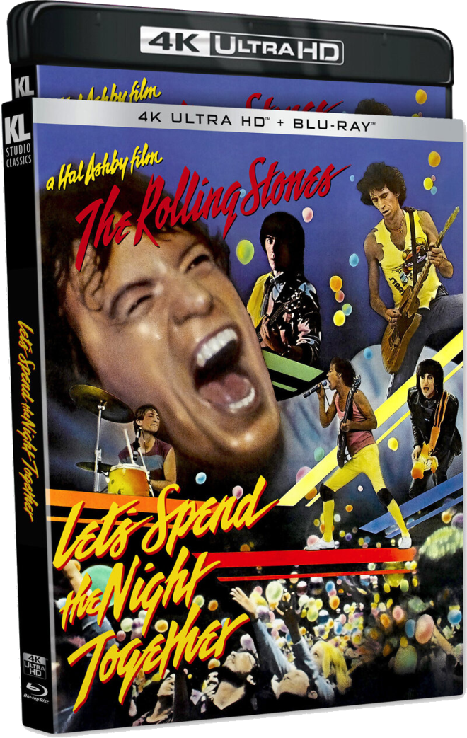 Rolling Stones Let's Spend the Night Together starts it up with a new two-disc 4K UHD + Blu-ray release from Kino Lorber Studio Classics. This release is housed on a UHD100 Disc, along with a Blu-ray version on a Region A BD50 Disc. Both discs are housed in a black case featuring artwork from the original poster. This release also includes a slipcover featuring the same artwork.