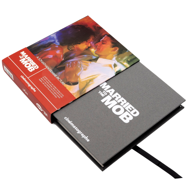 Married to the Mob comes to 4K UHD Blu-ray courtesy of Cinématographe, Vinegar Syndrome’s label dedicated to unsung classics from American auteurs. The film is printed on two discs, both a 4K UHD Blu-ray and a regular Blu-ray, with the majority of special features found on the second disc. The two discs are housed in a specially designed, cloth-bound media book and custom-molded disc tray, with a slipcase featuring newly commissioned art. The media book features essays by film critics Mitchell Beaupre, Aisha Harris, Nick Newman, and David Stewart.