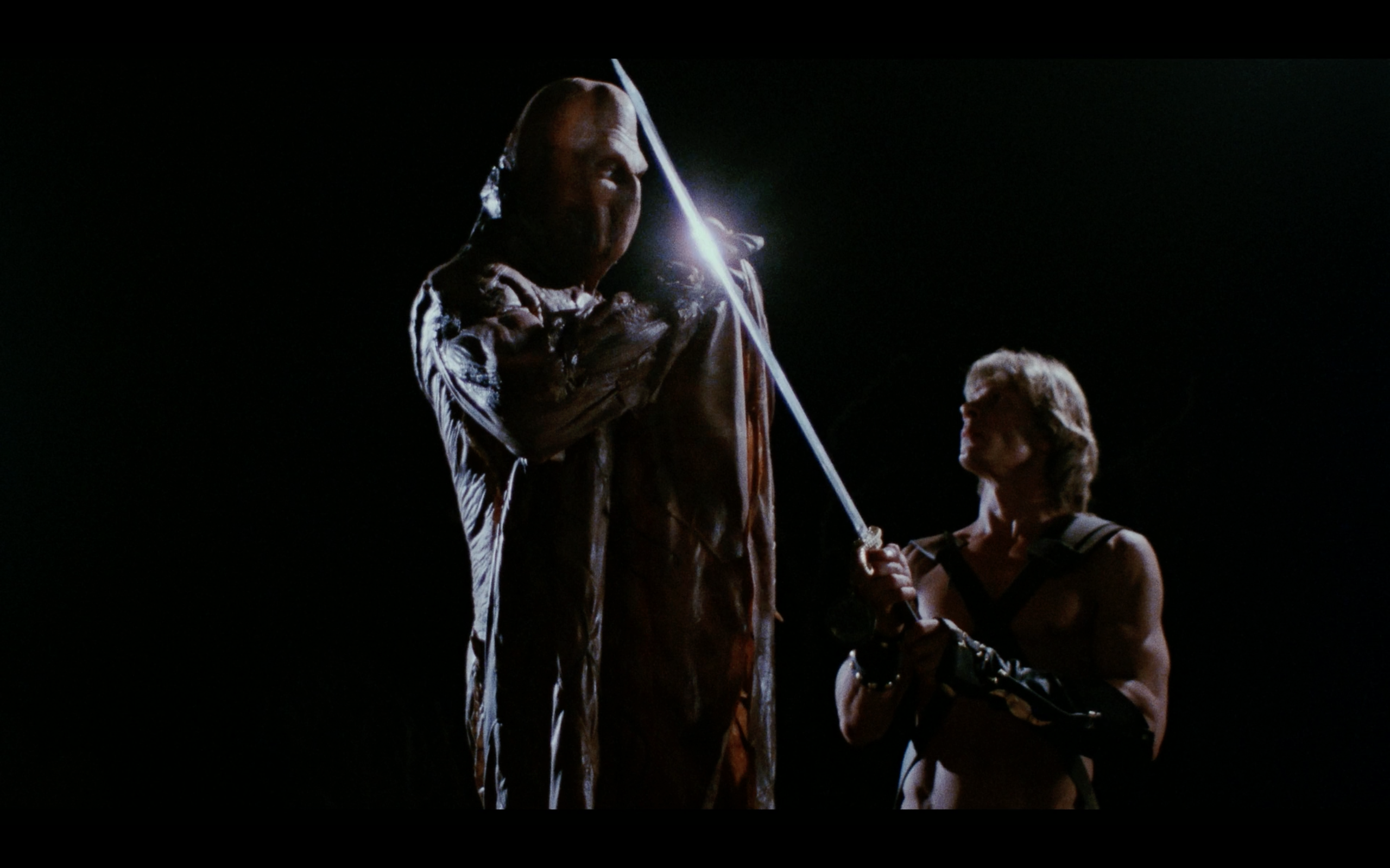 Because the original negative for The Beastmaster was left at a house when it was sold, it's feared lost forever. With that, the best elements available for this new 4K restoration was the 35mm Interpositive. While the OCN is obviously the ideal choice, this Interpositive still works a 4K miracle. At the start of the film, there is a title card warning viewers about the fluctuating grain structure and how it can appear heavier in certain sequences and less so in others. I appreciate that VS included this notice with their release because it's clear from the start that no image smoothing or DNR was employed - and the image looks all the better for it. The earlier scenes of the film is where grain is more apparent and looks larger - that's because early into filming they switched from anamorphic to spherical lenses to accommodate the eventual home video and broadcast market without having to cut off the sides to make it fit a standard era television. Once Marc Singer arrives as the adult Dar, that heavy larger grain structure subsides.