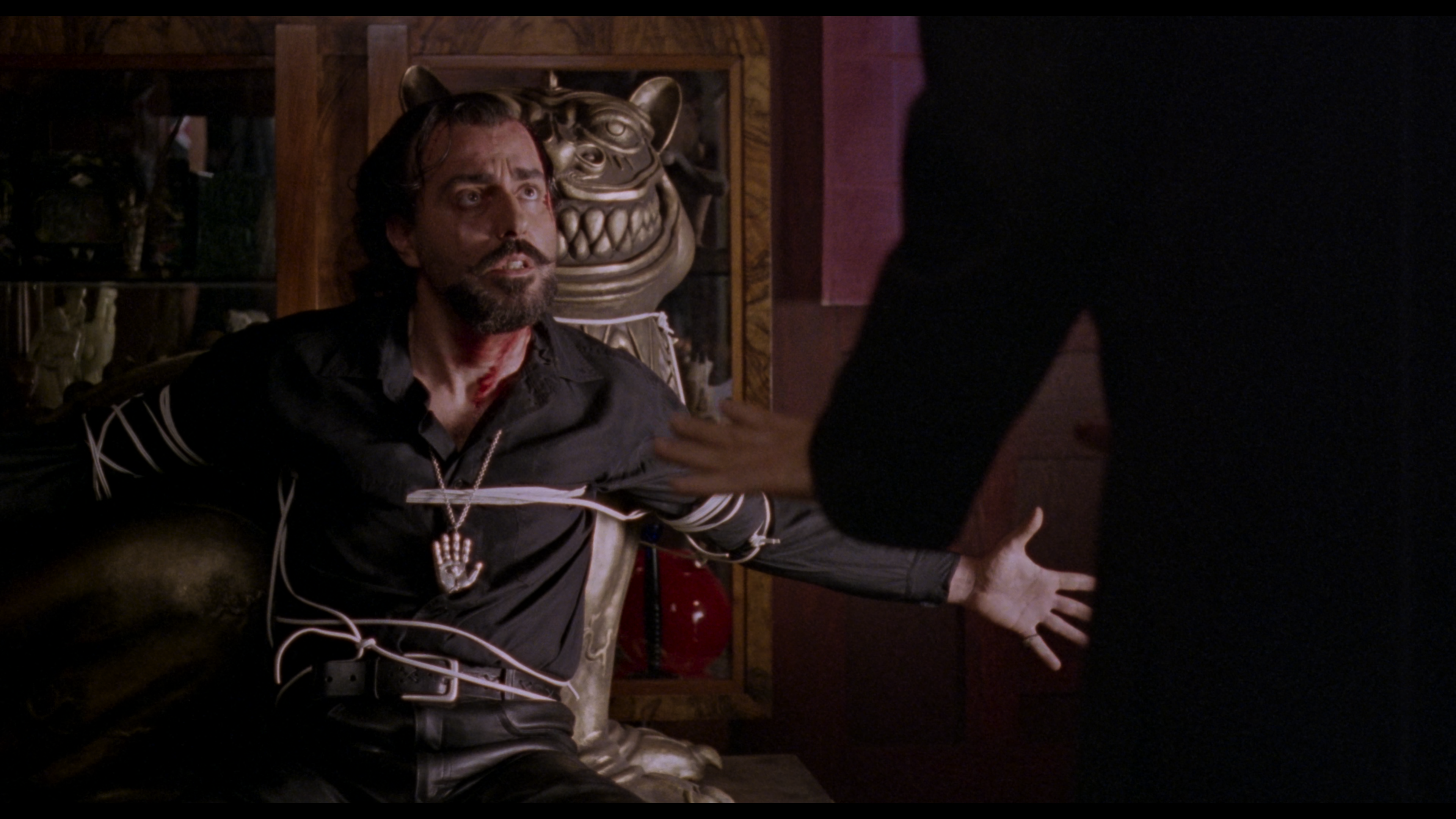 The Day of the Beast is a film of its era - budget and technological limitations of the time show their restraints, but so much of this film is so damn beautiful. The opening of the film with Cura kneeling before the altar with his fellow priest detailing his plan is a perfect example of the transfer's best attributes. Impressive facial clarity, clothing patterns, and production design work are all appreciable with this excellent native 4K transfer. Film grain is organic and nicely rendered, some dark sequences can be a bit heavier but nothing unsightly - no signs of any digital smoothing.