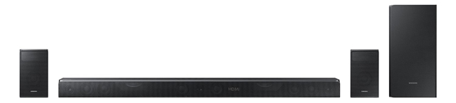 Samsung HW-K950/ZA 5.1.4 Channel Soundbar with Dolby Atmos Technology ($1,198) - The 47.6" HW-K950/ZA sound bar takes its Atmos support even further by adding in two wireless rear satellite speakers with upward-firing drivers of their own, resulting in a full 5.1.4 system that is still very apartment friendly. With that said, while the unit can properly decode Atmos tracks, it does not include DTS:X support, resulting in upconverted DTS mixes. Finally, the 500-watt system also includes a wireless subwoofer, Bluetooth connectivity, Wi-Fi, and HDMI with 4K pass-through.