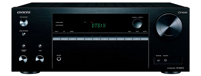 Onkyo TX-NR575 7.2 Channel Receiver ($449) - Another feature-packed entry-level receiver, this 7.2 channel Onkyo model also offers support for up to a 5.2.2 Dolby Atmos or DTS:X system. The unit uses a 32-bit DSP chipset, high-quality AK4458 384 kHz/32-bit DAC, and proprietary VLSC filtering, along with Dynamic Audio Amplification and proprietary non-phase-shift amp circuitry. Likewise, the device includes AccuReflex technology for phase-matched sound with Dolby Atmos-enabled elevation speakers. Chromecast built-in, DTS Play-Fi, FireConnect, Spotify Connect, AirPlay, and Bluetooth connectivity are integrated as well. Finally, the unit supports HDMI pass-through of HDR10 and Dolby Vision, the BT.2020 4K Standard, and 4K/60 Hz video.